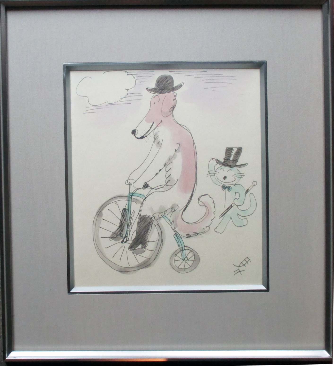 自転車に乗る犬と猫
